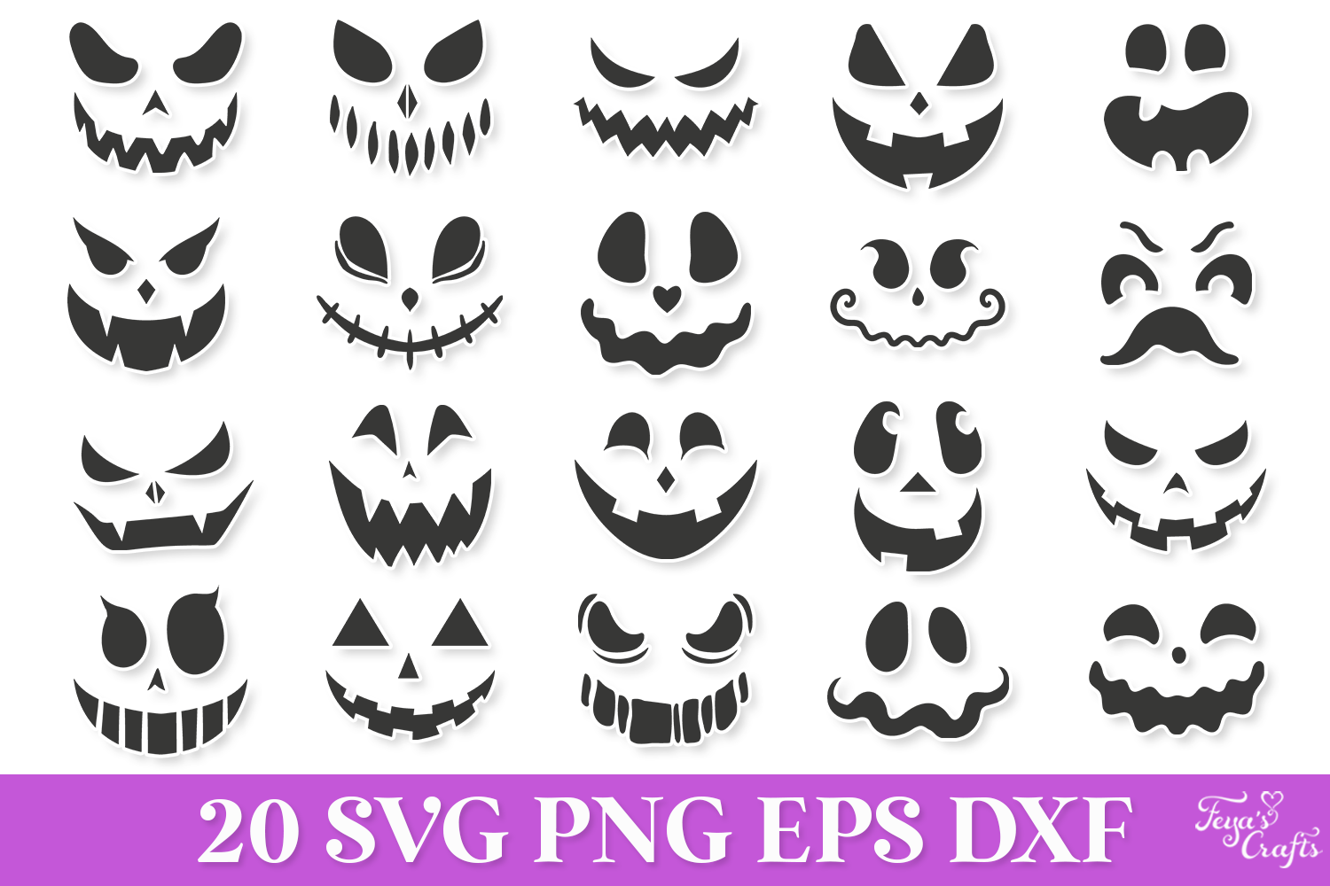 - 20 Halloween Pumpkin Faces saved in SVG, PNG, PDF, EPS & DXF format