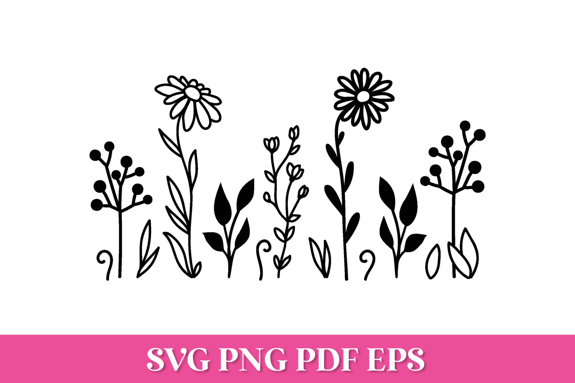- Wildflowers saved in SVG, PNG, PDF, EPS & DXF formats